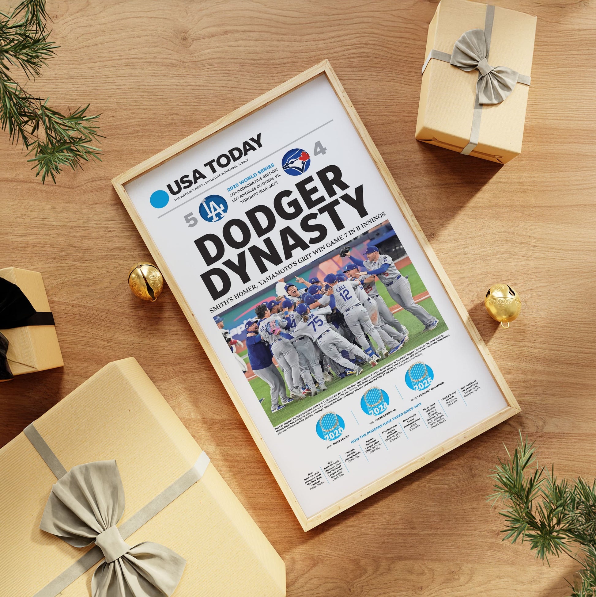 You were there for every pitch—whether in the stands, at your local bar, or pacing your living room at midnight. You lived through the nail-biting innings, the momentum swings, the moments when it felt like Toronto might steal it. And when it was over, when USA Today's presses rolled with "DODGER DYNASTY" across the front page, you knew this was different.