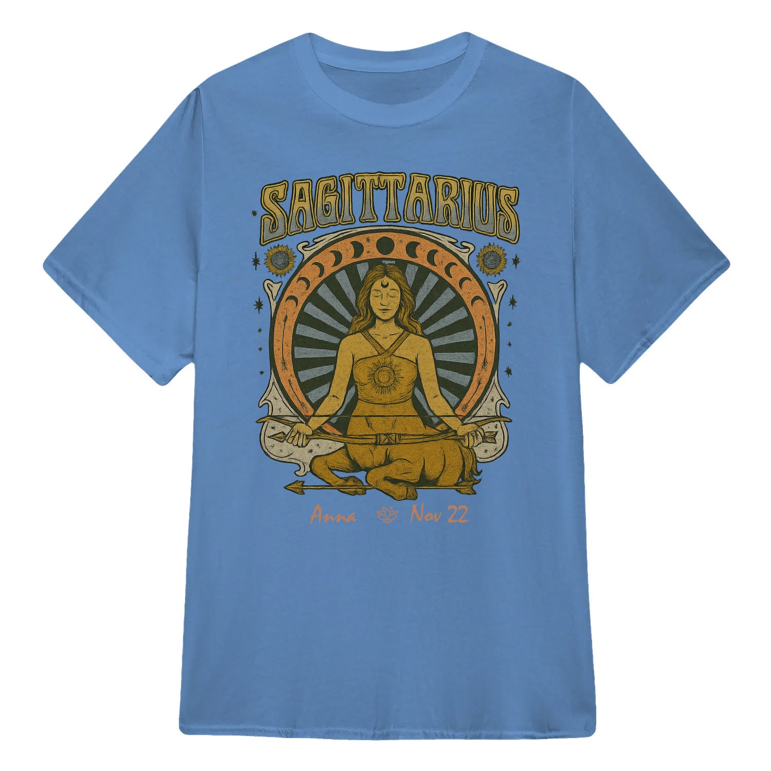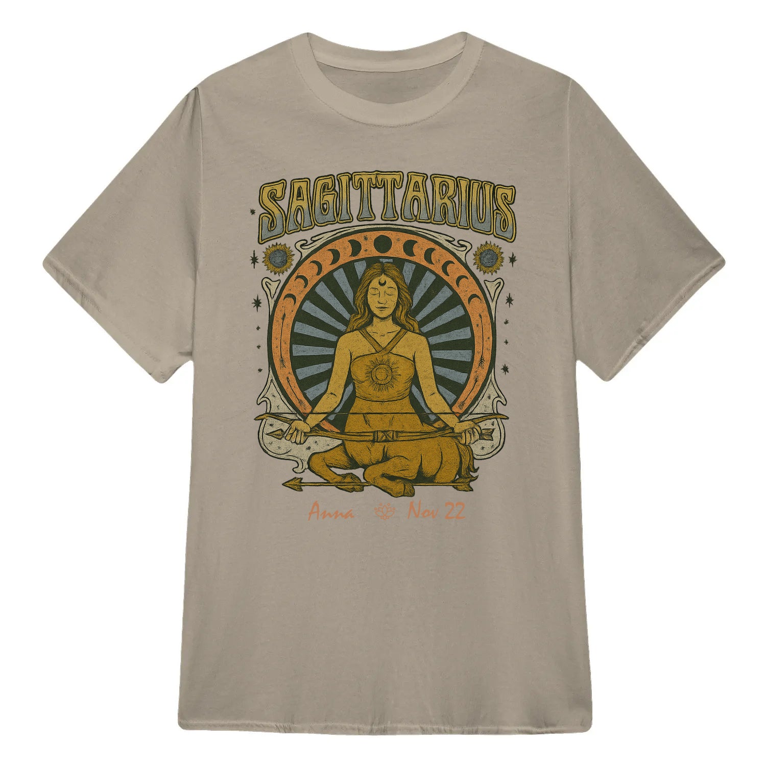 Zodiac Sagittarius Meditation Mandala Sun and Moon Symbols Yoga Classic Unisex T-Shirt | 5To9Style
